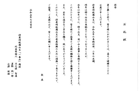 お礼状を頂き感謝感激です。
