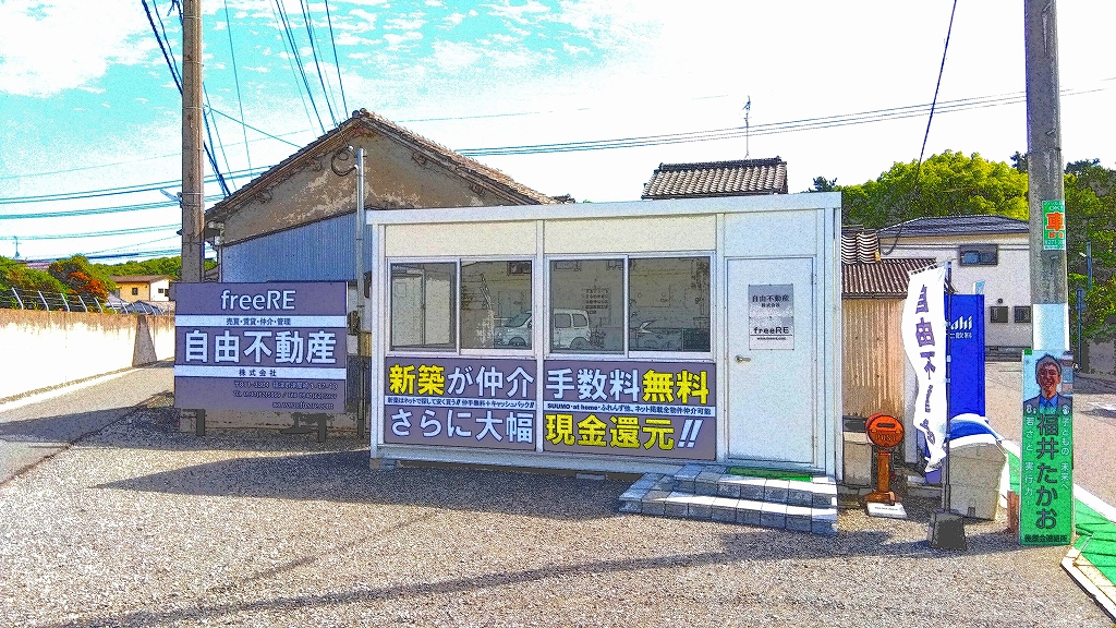 自由不動産株式会社は、福津市津屋崎にある不動産会社です。「海と山に近い」豊かな自然に恵まれた町、津屋崎。古民家の建ち並ぶ、情緒溢れる『津屋崎千軒』の町並みの入口近くに、自由不動産の事務所は在ります。