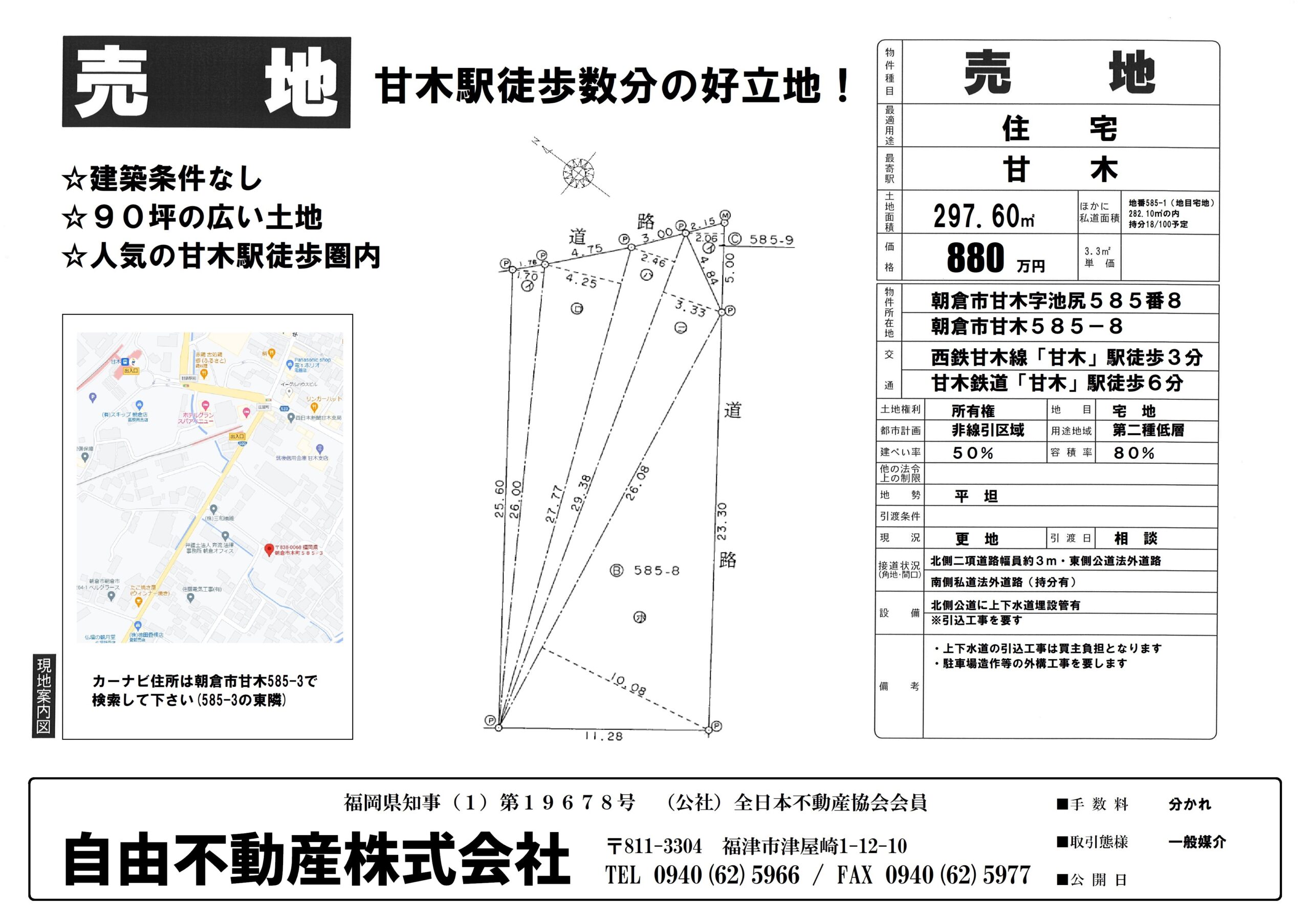 0880万円 甘木駅徒歩3分 90坪